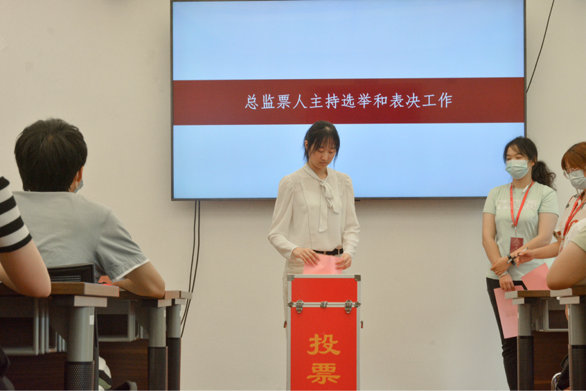 总监票人包欣琳主持大会选举和票决工作,与会代表以现场无记名投票方式选举产生了由王苗亦、曹雯萱、季秋吟3人组成的公司第二十二届员工会主席团。