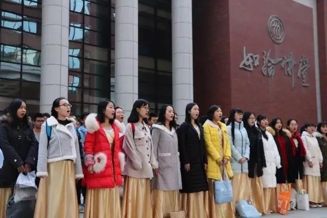 12月9日上午10点,我们进行了唯一的一次现场彩排,女生们穿上了金色长裙,大家争分夺秒地在台上练习,适应舞台效果。尽管气温很低,但大家内心都无比激动,想要尽最后的努力做到完美。