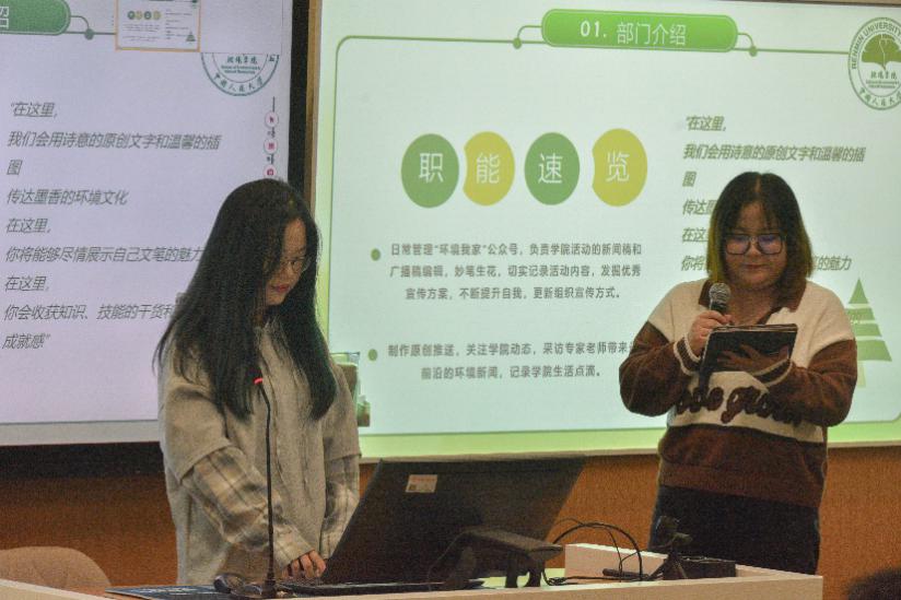 学术实践部从“植此青绿”、“青思沙龙”、“师兄师姐说”等特色活动入手,向大家介绍了部门日常开展的学术交流活动,鼓励大家参与其中,一同交流探讨学术问题。