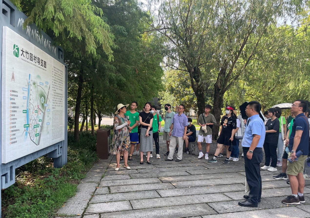 实践教学团队聆听讲解员关于大竹园村发展模式的介绍