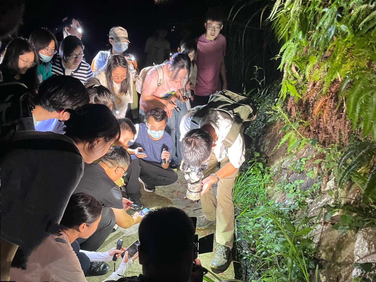 张海华记者带领团队师生开展生物多样性夜探