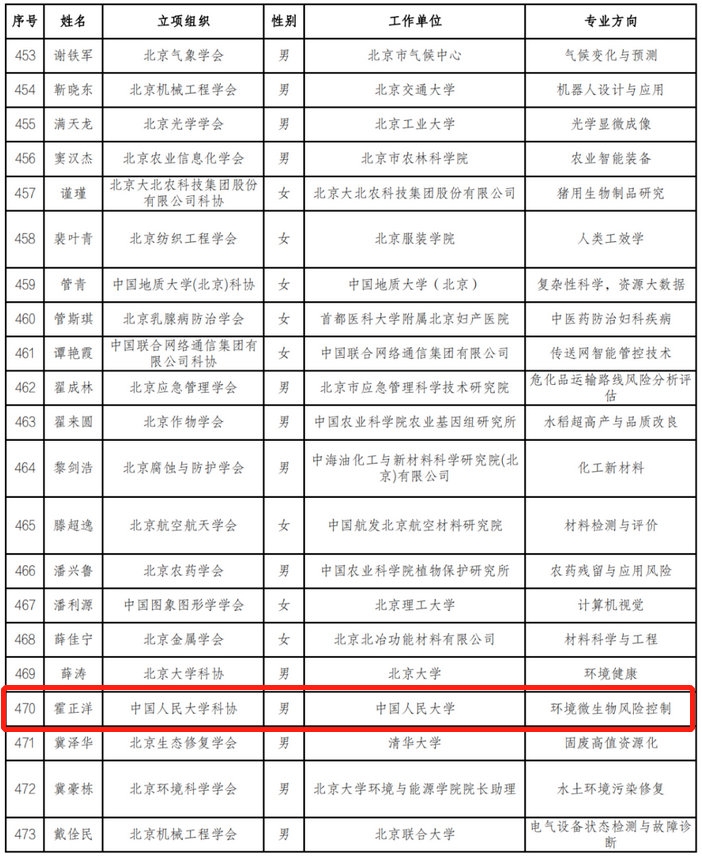 近日,北京市科学技术协会公布了2023-2025年度青年人才托举工程入选名单,yl1111永利集团环境公司青年教师霍正洋入选。