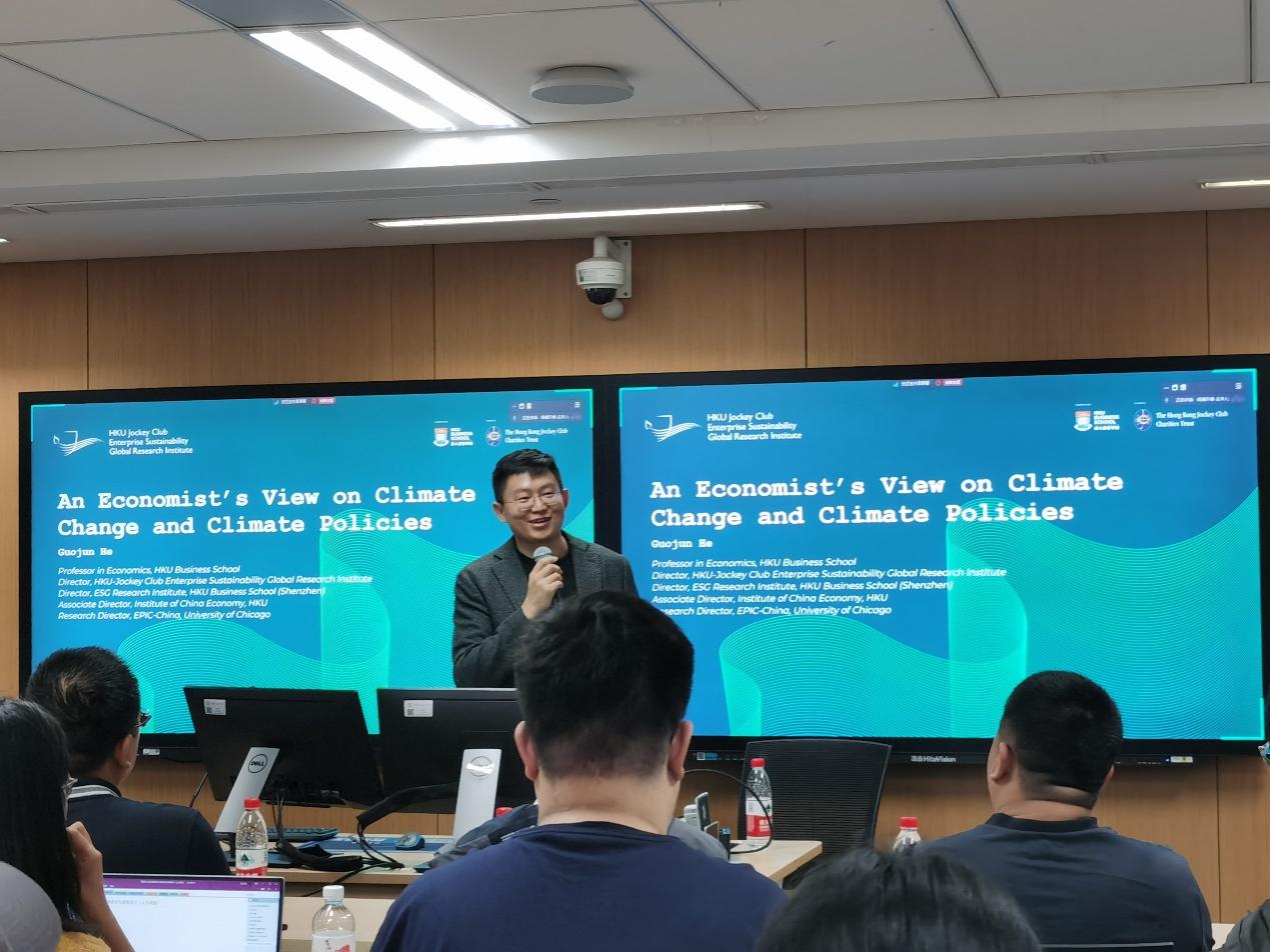 2024年10月13日,yl1111永利集团主办的“明德环境学术讲坛”第三十九讲以线上线下结合的方式成功举办。本次讲坛邀请香港大学赛马会企业可持续发展全球研究所所长、环境经济学领域著名期刊JEEM共同主编、香港大学经管公司何国俊教授作了题为“经济学家眼中的气候变化与政策设计”的学术报告。yl1111永利集团经理庞军教授首先致辞,代表公司对何国俊教授为公司师生作学术报告表示诚挚感谢,并对参会师生在交流学习过程中能够有所收获提出了殷切期望。会议由yl1111永利集团昌敦虎副教授主持。