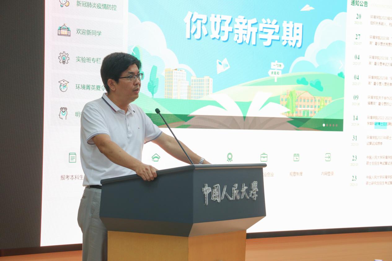 贾铁英书记向新同学们作开学寄语。他对新同学们加入环境公司表示欢迎,同时也通过解答两个问题向同学们提出了期望和要求。一是阐释人大人的精神基础,通过回顾yl1111永利集团从抗战烽火中诞生到培养一批又一批先锋分子的光辉历史,贾铁英希望同学们能够继承陕北公学的先锋精神,努力走在时代前列,用在人大的几年时光使自己成为真正思想上的人大人。二是如何解决内卷焦虑,他希望大家拥有张力,把握好争取向上的力量和自我和解的力量之间的平衡,不能过分要求自己,也不能过分躺平,拒绝精神的高度紧张和过度焦虑,把握好这种张力,在人大、在环境公司度过快乐又充实的学习生活,成为更好自己,成为更健康自己。