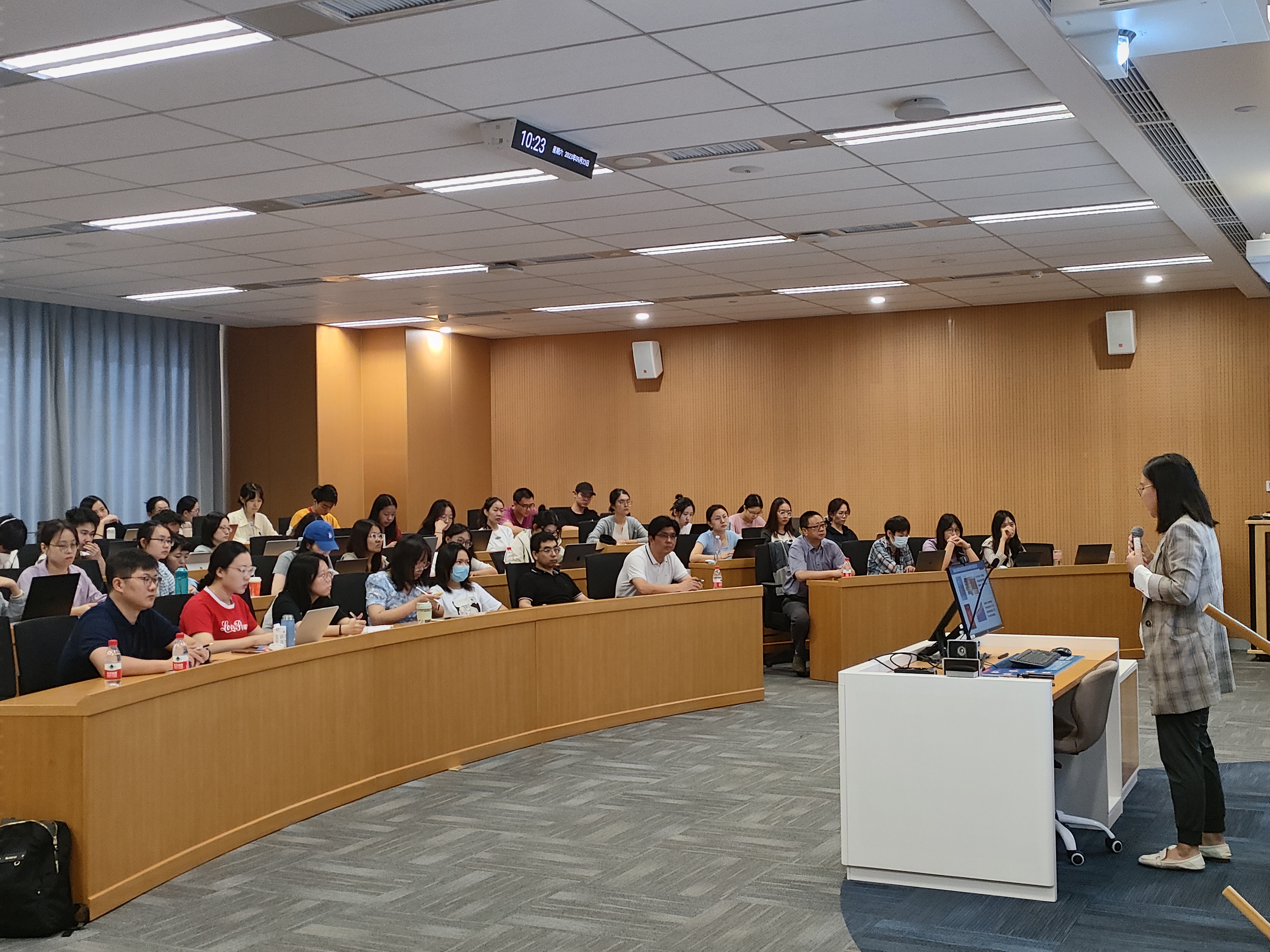在最后的点评环节,庞军经理高度评价了同丹老师的精彩报告,指出同丹老师的研究工作基础扎实,分析规范、严谨,展现了良好的理论推演和学术逻辑,为构建更加符合中国实际的研究范式提供了有力参考。庞军经理勉励同学们要关注现实问题,加强研究创新性和数据原创性,认真学习专业理论和方法,密切跟踪本专业最新研究成果。最后,庞军经理鼓励同学们向同丹老师学习,在研究上投入心血精力,加强团队协作,力争产出更多高质量的学术成果。