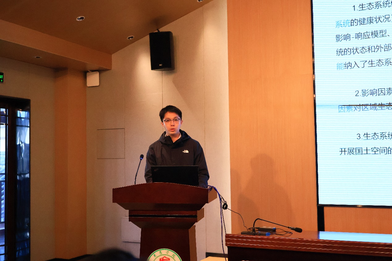 福建农林大学朱玮晗同学汇报了中国生态系统健康的时空演变、驱动机制和区划优化途径,他通过构建基于 “活力-组织-恢复力-生态系统服务”(VORS)模型的生态系统健康评价框架,揭示了 2000-2020 年中国生态系统健康的时空演变特征,在时间上总体呈下降趋势,在空间上呈现出较强的空间正相关性和空间集聚特征,基本格局为西北地区较低,东南地区较高;运用地理检测器和时空地理加权回归模型分析了主要影响因素和空间分异特征,发现植被覆盖率、年平均降雨量、人口密度和路网密度是中国生态系统健康的主要影响因素;按照五类生态管理区的划分对各区的生态系统健康提出了不同的优化策略。
