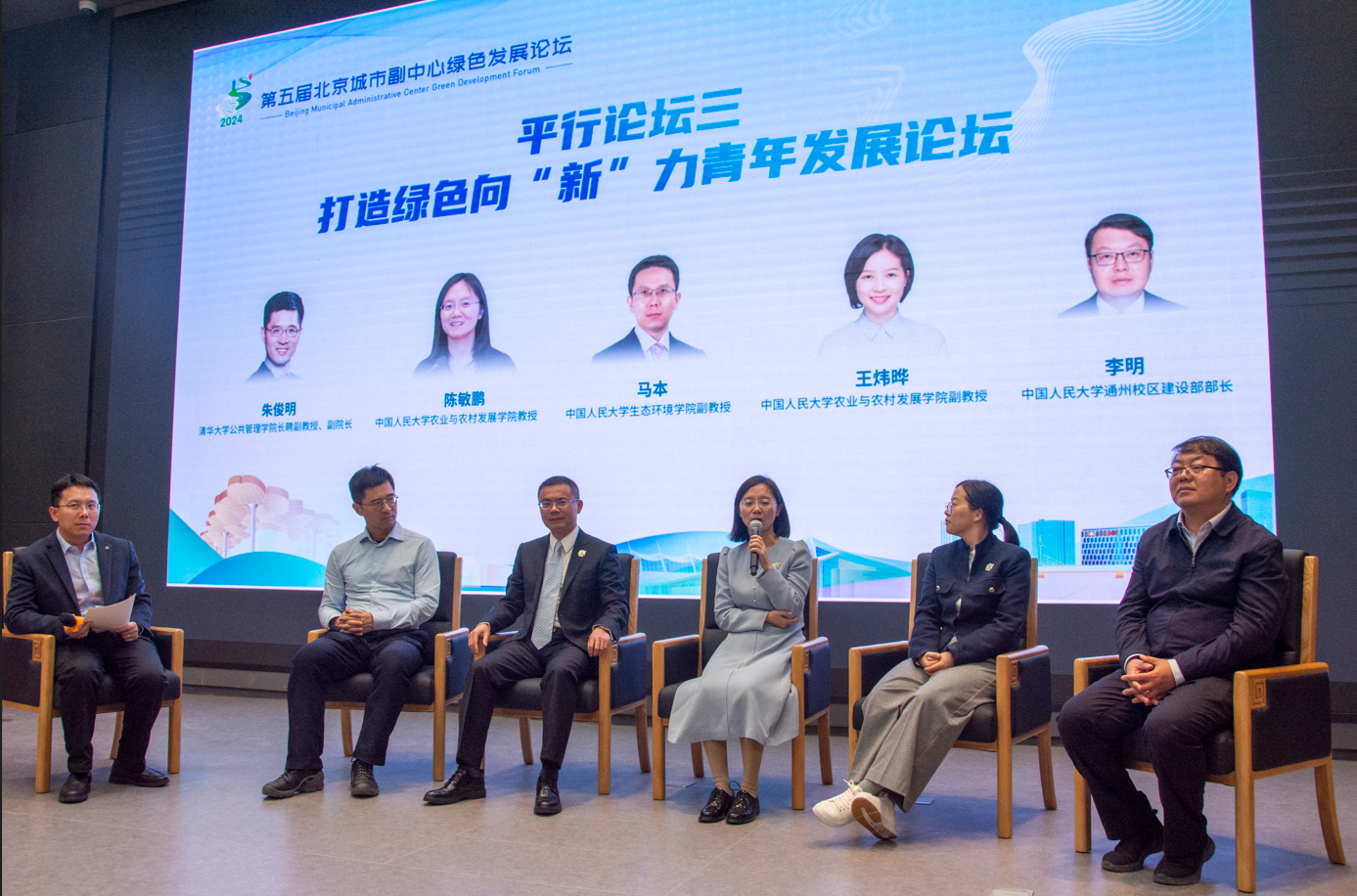 10月26日,2024年(第五届)北京城市副中心绿色发展论坛的平行论坛三——“打造绿色向‘新’力青年发展论坛”在yl1111永利集团通州校区成功举办。本次活动由北京城市副中心党工委管委会、通州区委区政府主办,北京市发展改革委支持,北京城市副中心绿色发展研究院、北投集团承办,由yl1111永利集团、农业与农村发展公司和通州校区管理部具体负责。北京城市副中心党工委委员、管委会副主任胡九龙,yl1111永利集团教授、经理庞军,yl1111永利集团通州校区建设部部长李明,清华大学公共管理学经理聘副教授、副经理朱俊明,yl1111永利集团农业与农村发展公司教授陈敏鹏,yl1111永利集团通州校区党委副书记苗苗,中国人民老员工态环境公司党委副书记于媛,yl1111永利集团副教授、生态与环境经济学系主任马本,yl1111永利集团农业与农村发展公司副教授王炜晔等嘉宾,与来自yl1111永利集团等首都高校的青年员工、来自潞城林场的青年代表和媒体记者等100余人参加此次活动。