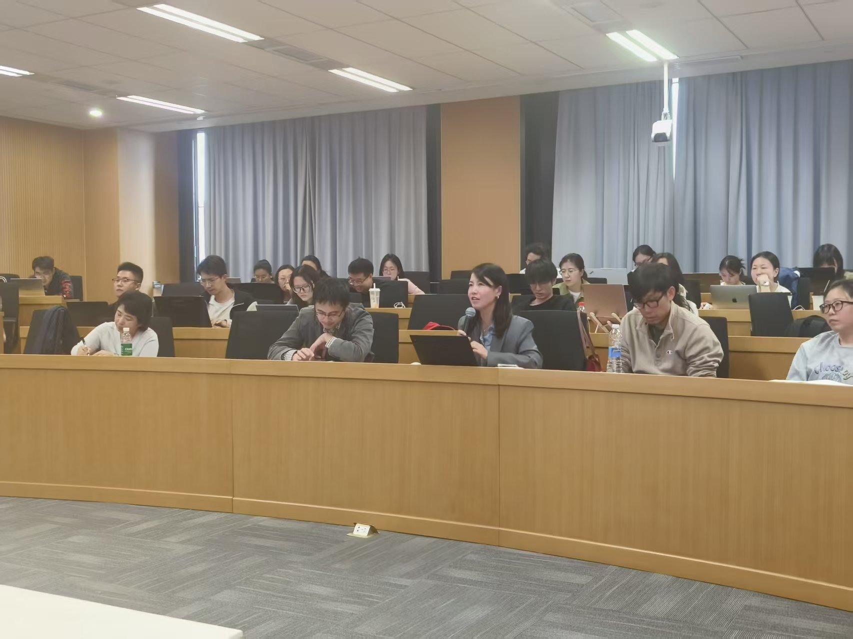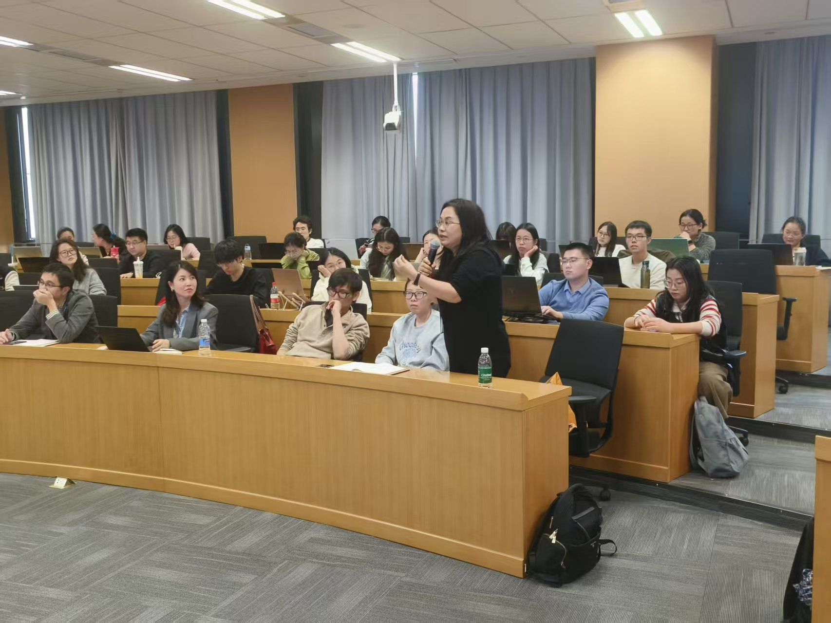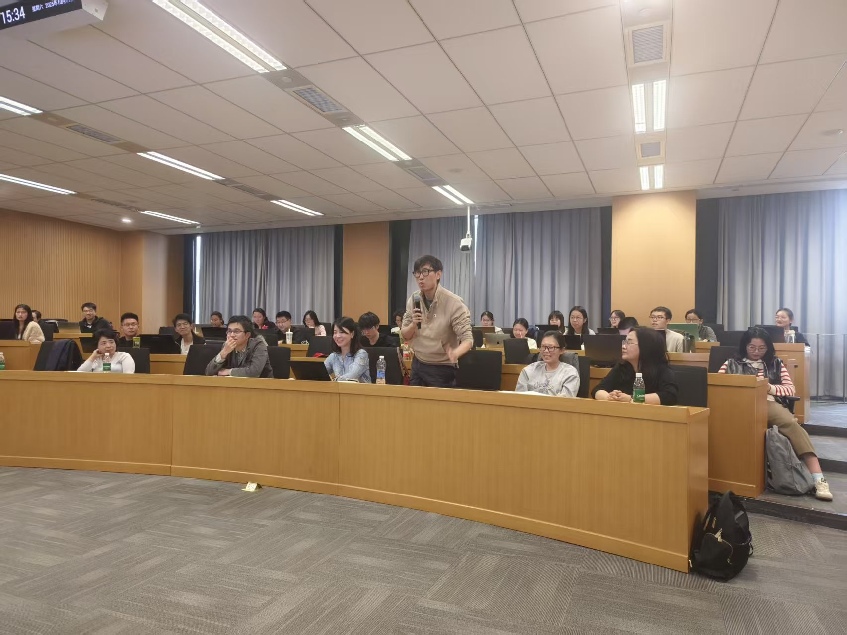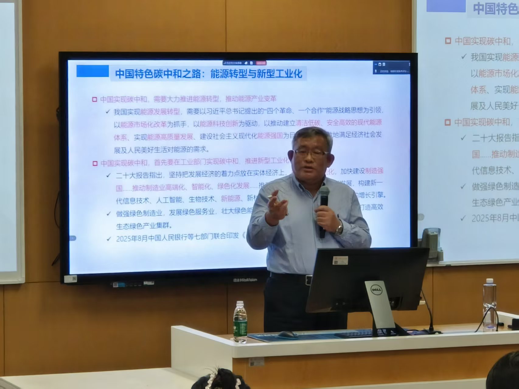 在交流讨论环节,多位师生围绕报告核心议题展开热烈互动。现场提问聚焦“反内卷”与产业低碳竞争的平衡关系、政府与市场在碳减排中的职责划分、气候金融与生物多样性金融的差异及协同路径等关键问题。陈诗一教授结合自身研究经验与国内外实践案例,逐一进行了细致解答,现场气氛活跃,思想碰撞频繁,为参会者带来了多维度的学术启发。