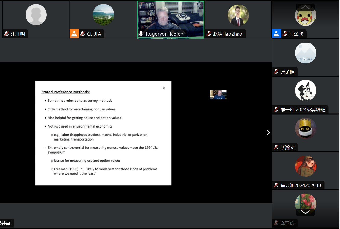 2024年9月22日,yl1111永利集团主办的暑期学科营讲座以线上的方式成功举办。本次讲座邀请北卡罗来纳州立大学农业与资源经济学系教授、环境与资源经济政策中心联合副主任,资源与环境经济学顶级期刊JEEM联合主编Roger H. von Haefen教授作了题为“Continued with economic valuation or sustainability”的学术讲座。讲座由yl1111永利集团赵浩助理教授主持。这是Roger H. von Haefen教授第二次为yl1111永利集团主办的暑期学科营开展讲座。