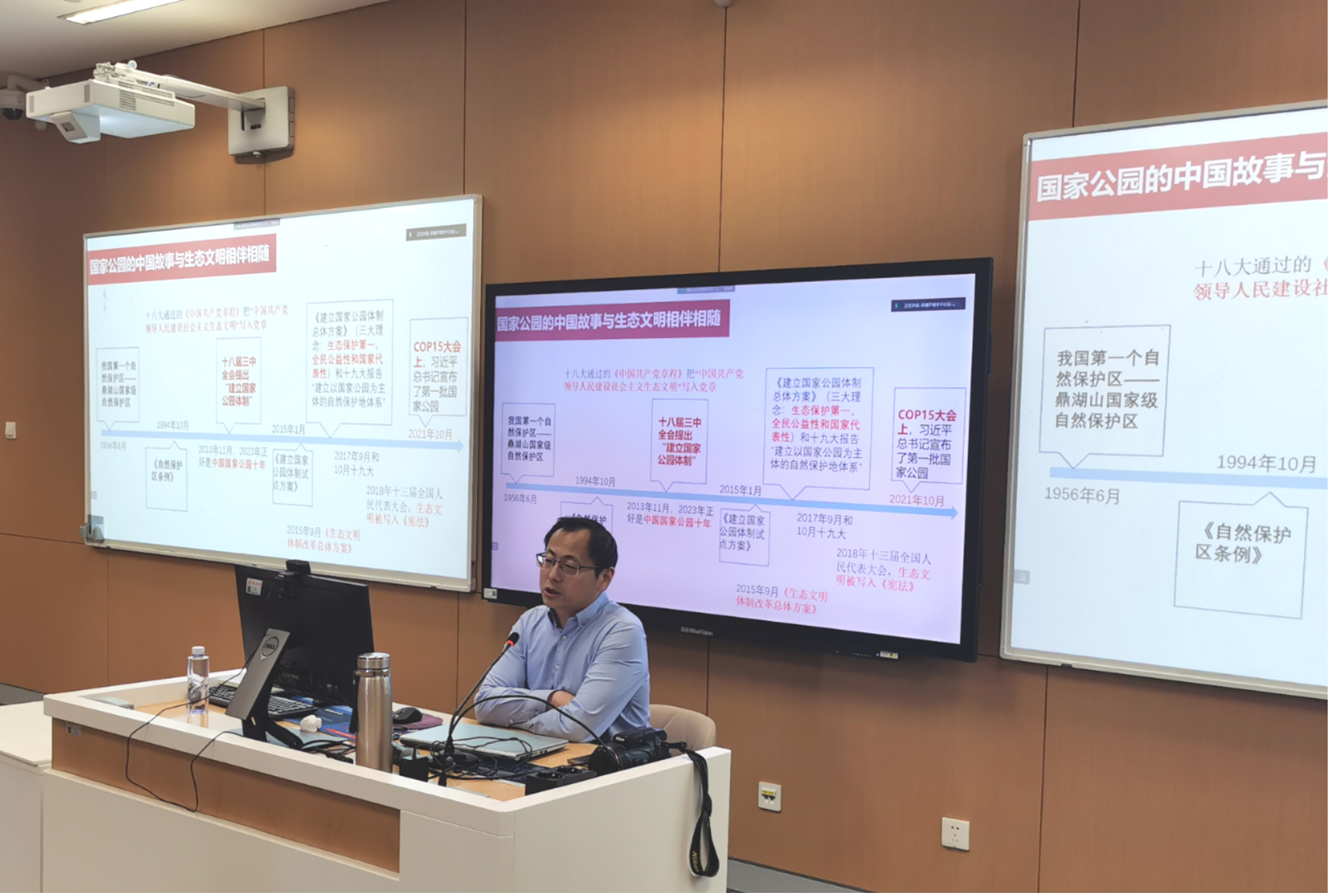 在点评环节,yl1111永利集团环境公司苏明明副教授高度评价了苏杨研究员的精彩报告,指出苏杨研究员通过系统的逻辑框架、深刻的理论内涵和丰富的案例分析,深刻剖析了在我国绿色发展背景下国家公园的实践及相关学术问题,不仅明晰了国家公园体系和体制的发展过程和制度逻辑,也点明了相关研究中涉及的多学科交叉特点和研究机遇,具有很强的跨学科启示和研究指导意义。苏明明副教授还勉励同学们在我国推进以国家公园为主体的自然保护地体系建设背景下积极探索,用心研究,努力做出更多具有实践价值和政策意义的成果。