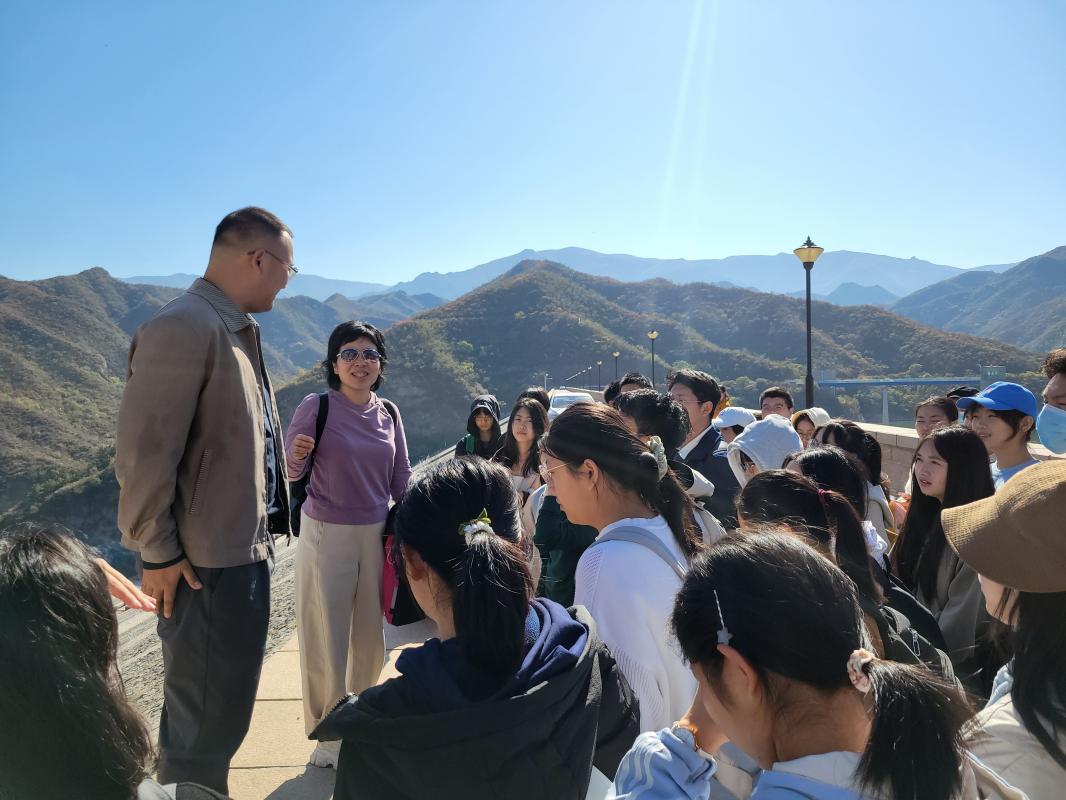 10月22日上午,师生一行抵达斋堂水库。吴健老师结合永定河流域生态环境特征及其保护修复现状,向同学们讲解了北京市国土空间规划总体情况和门头沟区在其中的功能定位,并要求大家按照行前制定的研究计划开展调研,多问多想,努力做到学有所思、行有所得。