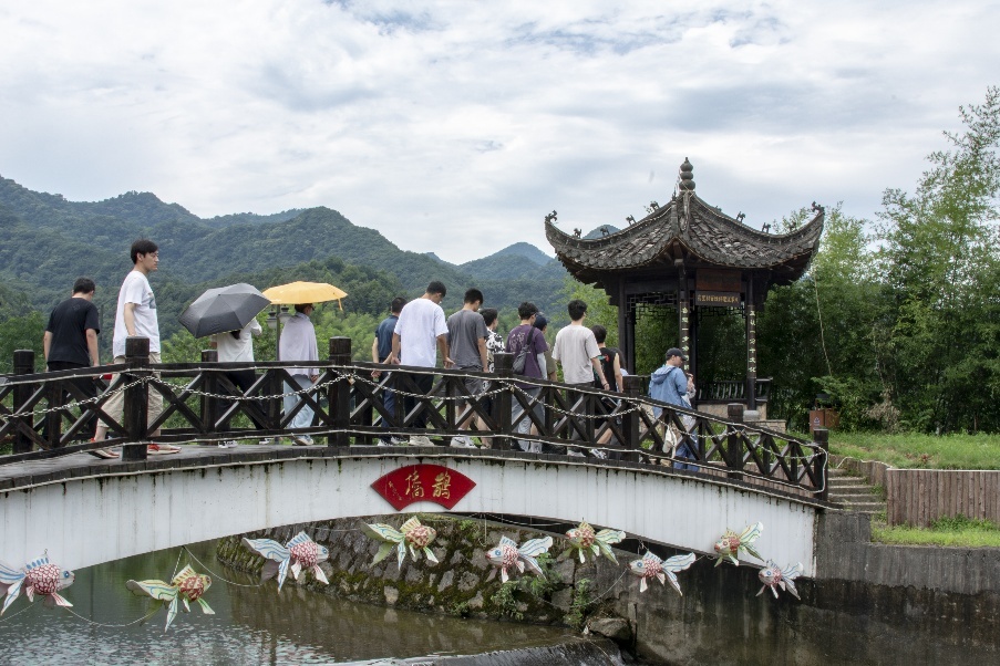 离开龙山村后,调研团一行继续来到丫木脚村了解传统古村落保护,感受省级非遗“十兽灯”的文化传承,在水龙山瀑布体悟生态之美。