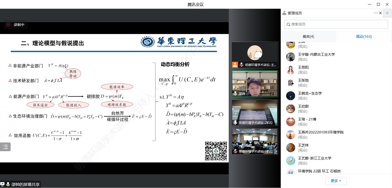 来自yl1111永利集团、华东理工大学、北京大学、武汉大学、哈尔滨工业大学、四川大学、华东师范大学、首都经贸大学、北京工业大学、生态环境部环境规划院等三十余所国内外高校、科研机构等部门的300余名师生及科研人员参加了本次讲坛。