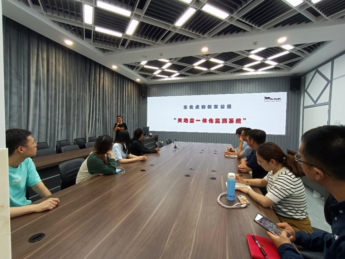 晚上,调研团来到延边大学珲春校区,北京师范大学冯利民教授介绍了国家公园内天地空一体化监测系统、以及生物多样性保护监测情况,该系统有效提高了日常巡护和管理效率,监测体系还可以发布警示预报,提醒巡护人员和周边居民,避免可能发生的“人伤虎,虎伤人”事件,做到了通过科技力量实现生态保护和民生改善双赢。