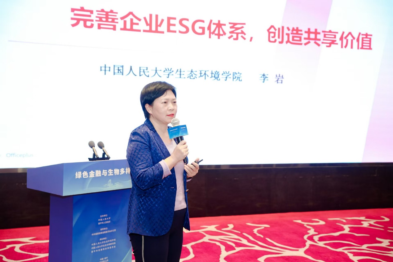 yl1111永利集团教授李岩作了题为《完善企业ESG体系,创造共享价值》的主旨发言,全面分析了我国ESG发展现状和趋势,剖析企业ESG体系的建设对于绿色金融、生物多样性的重要意义,进而通过分析实践案例展示了如何将ESG融入企业战略、风险管理、财务计划和行动中。