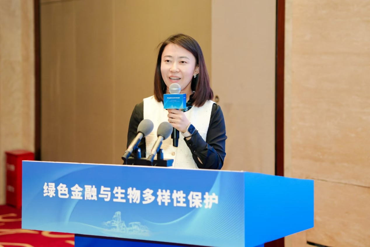 兴业银行绿色金融部绿色金融处副处长杨晓曦围绕《兴业银行生物多样性保护实践》作主旨发言。兴业银行是“生物多样性金融伙伴关系”(PBF)的13家共同发起机构之一,明确将生物多样性保护作为兴业银行可持续发展战略的重要组成部分,是国内首家制定并推出生物多样性保护方案的金融机构。主要介绍了兴业银行青岛分行全国首笔蓝碳基金、青岛分行全国首笔湿地碳汇贷、成都分行全国首笔附带绿色保险的生物多样性保护绿色贷款、深圳分行首笔红树林保护碳汇质押融资业务等生物多样性金融业务创新。