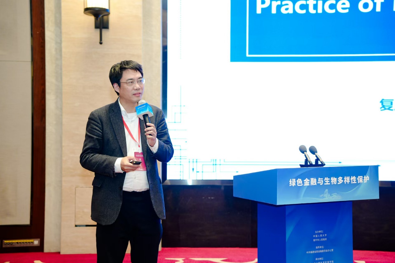复旦大学经济公司党委副书记,复旦大学绿色金融研究中心执行主任,联合国开发计划署生物多样性金融专家李志青发表了题为《生物多样性财务信息披露的国内外实践》的主旨发言,介绍了生物多样性财务信息披露的国内外实践制度与政策维度,国际指标与标准,以及其在生物多样性金融中的作用,呼吁中国企业提高生物多样性信息披露的深度和广度,以提升融资绩效。