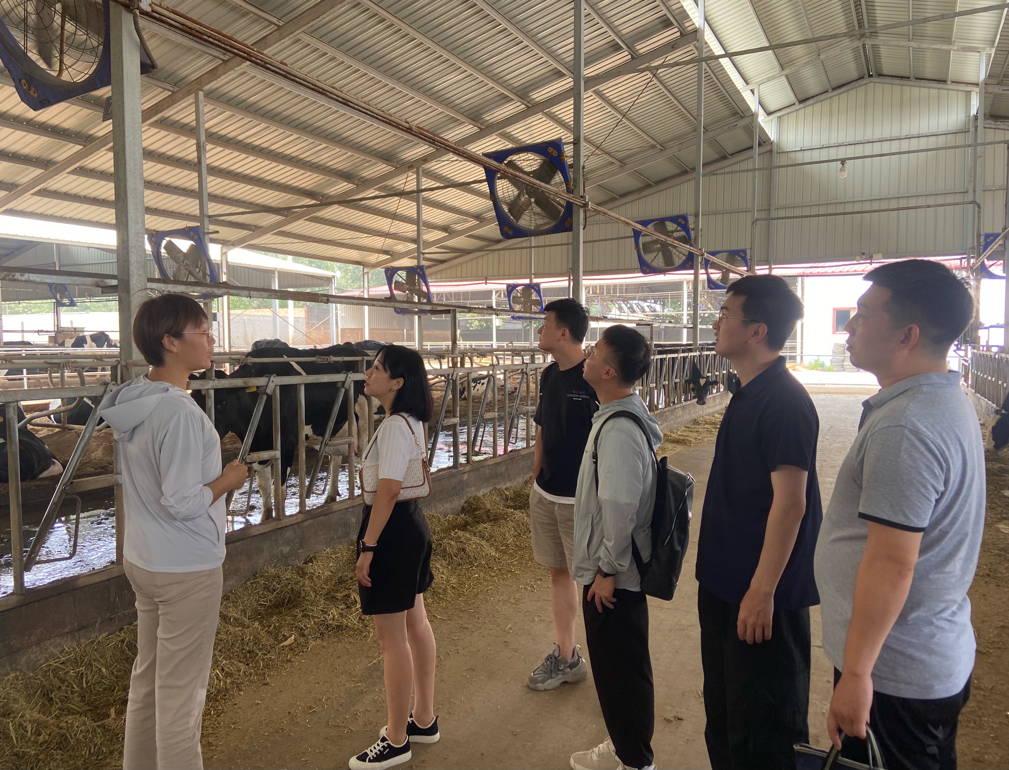 8月3日上午,实践团前往北洼乡朱食村和顺种植专业合作社,参观了中药材种植基地,深入了解丹参的成本效益、合作社基础设施建设、中药材和农作物轮作情况及灵寿县中药材产业面临的发展机遇与挑战。在西孙楼村兴业奶牛养殖专业合作社,调研团参观了现代化奶牛养殖基地,近距离接触奶牛生长环境,了解先进科技原奶生产流程和质量安全把控措施,对龙头企业推动地方经济的作用有了进一步认识。在狗台乡王阜安村顺明仙桃谷5000亩桃园,调研团通过访谈形式,了解桃园种植分布情况、生产经营模式,短期与长期发展规划,针对发展瓶颈与负责人进行了充分探讨。