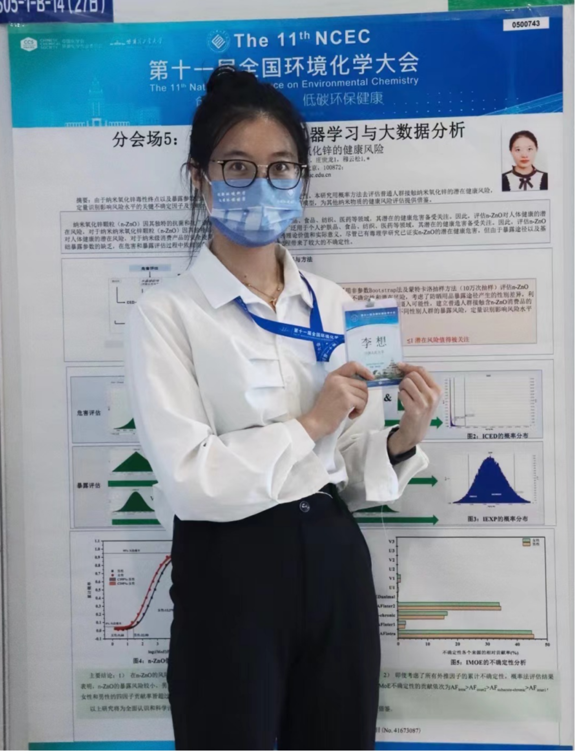 李想同学的墙报主题为“蒙特卡洛方法评估纳米氧化锌的健康风险”。