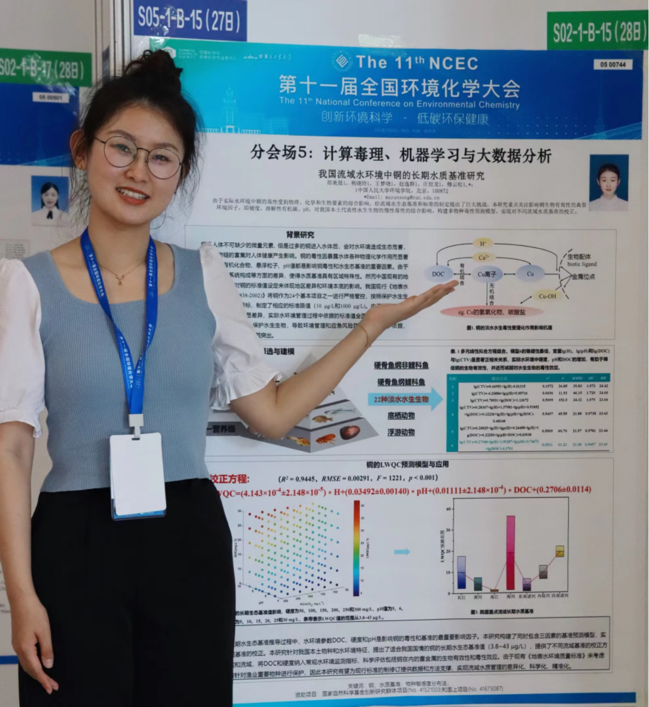 邵美晨同学的墙报主题为“我国流域水环境中铜的长期水质基准研究”。
