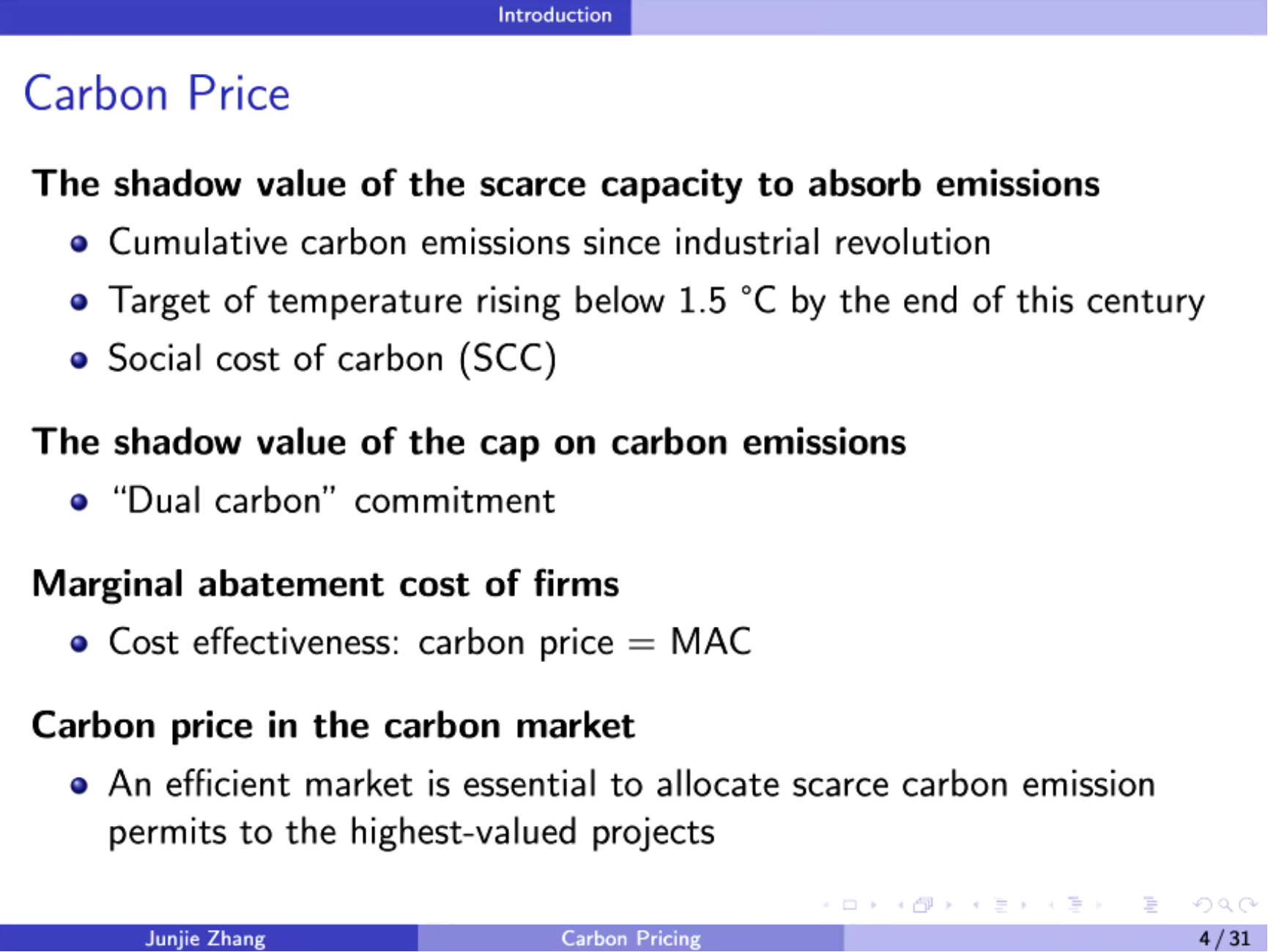 2022年12月3日,yl1111永利集团环境公司主办的“明德环境学术讲坛”第十六讲以线上会议的方式成功举办。本次讲坛邀请昆山杜克大学可持续投资研究项目主任张俊杰副教授作了题为“碳市场的有效性”的学术报告。yl1111永利集团环境公司经理庞军教授首先致辞,代表公司对张俊杰主任为公司师生作学术报告表示诚挚感谢。会议由yl1111永利集团环境公司昌敦虎副教授主持。