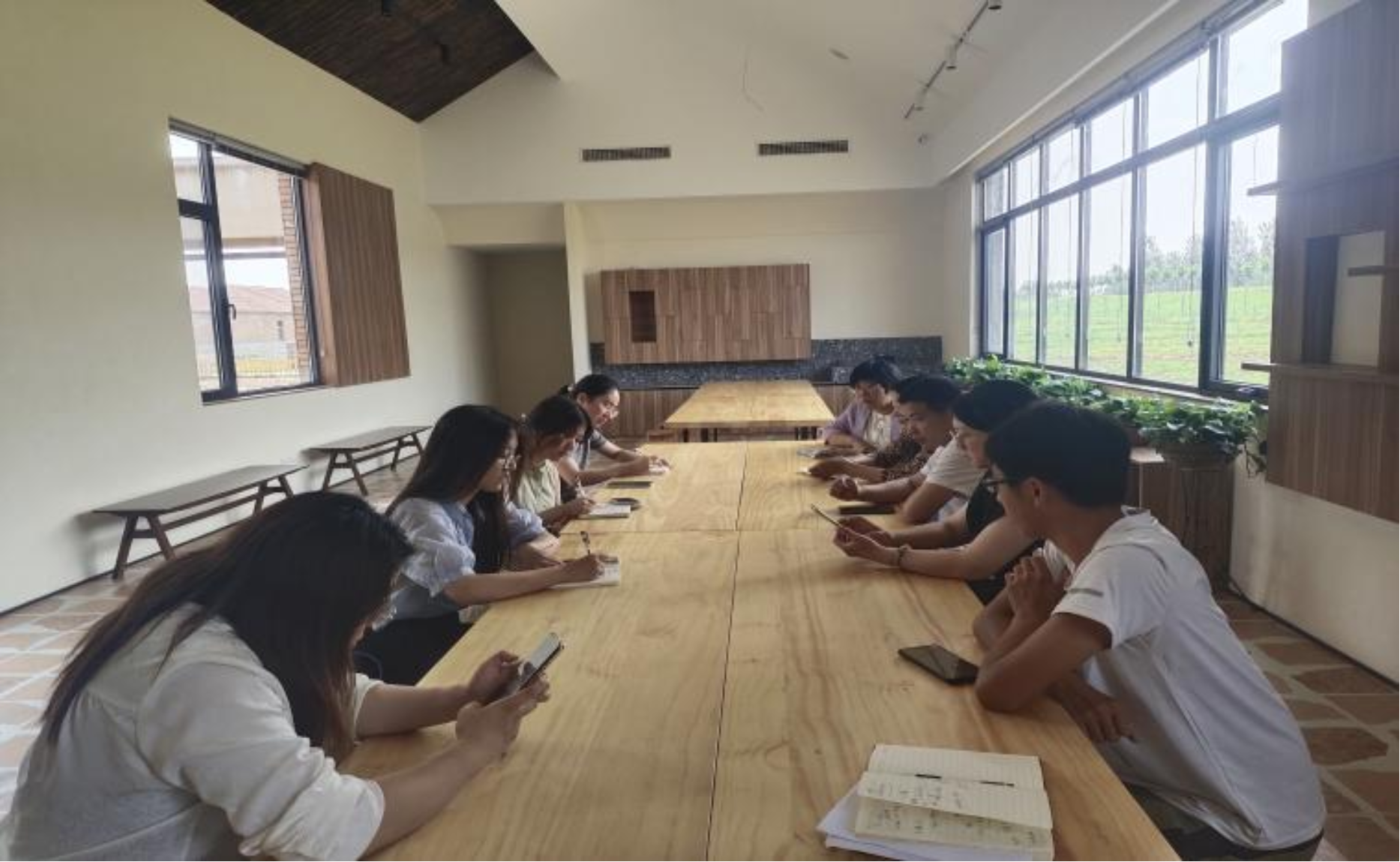 考察结束后,三位同学在东营博士联谊会的支持下与董集镇委、镇政府有关人员开展座谈交流。三位同学一致表示,从佐王村产业园粮食种植项目到杨庙社区,再到黄河里·乡村振兴公司,我们沿着总书记的脚步一路走一路看,处处景色都见证着乡村人居环境的美丽蜕变。在村庄越来越美的同时,董家镇充分发挥基层党支部及村集体凝聚村民的优势作用,通过党支部领办合作社鼓励农民入股,构建起群众和集体的利益共同体。此外通过大力发展物流、电商等助推“三产”融合,促使农民群众的钱袋子越来越鼓,收入更加多样。这一路的参观学习不仅为我们的课题调研提供了丰富的素材,更给我们上了一堂生动的党课。