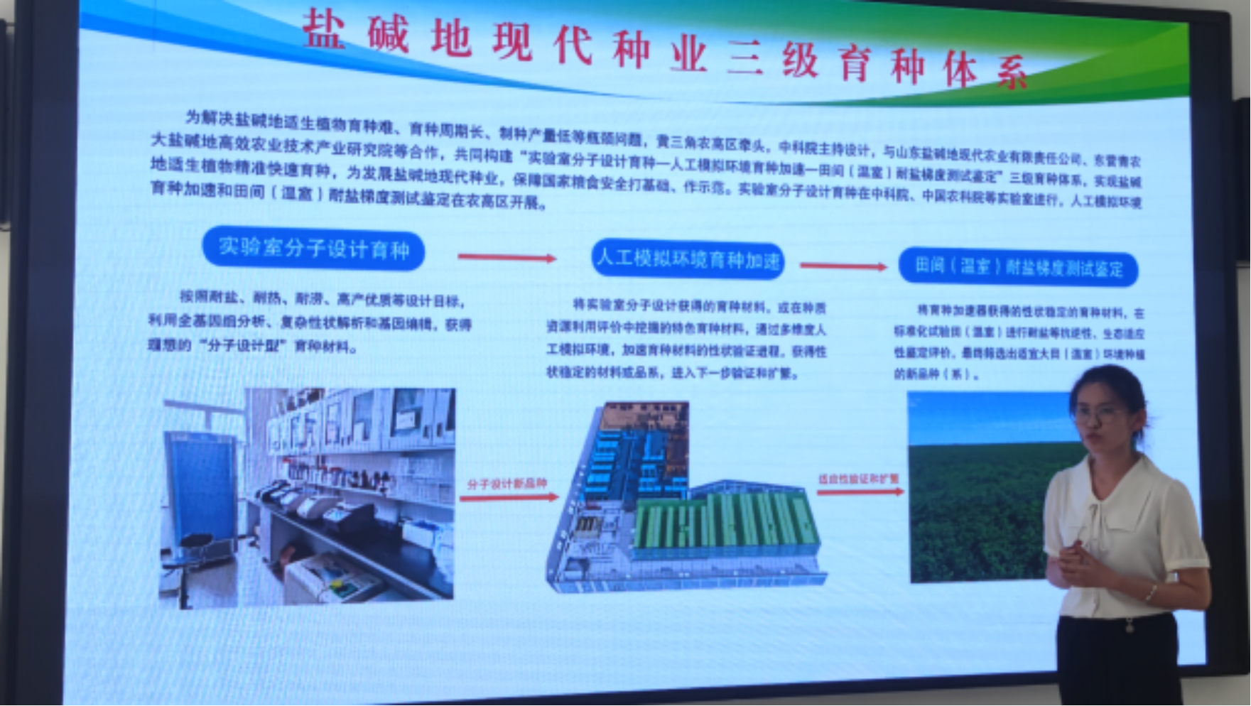 黄河三角洲农业高新技术产业示范区(简称“黄三角农高区”)于2015年成立,总面积350平方公里,是我国第二个国家级农高区,其基本任务是盐碱地综合利用。在国家盐碱地综合利用技术创新中心三位工作人员的介绍下,课题组成员先后参观了耐盐碱植物精准快速育种平台、新一代智能农机装备中试研发平台、益虫资源综合利用中试研发平台的相关工作。课题组成员了解到,黄三角农高区与中科院、中国农科院等48家高校院所、98个专家人才团队合作,建设完善了耐盐植物精准快速育种、病虫害生态防控等8个重大科研平台,取得了耐盐高产优质牧草新品系、“鸿鹄”系列智能农机等一批创新成果。参观结束后,三位同学与农高区工作人员就种质资源科研投入的应用与效益、智能农机作为服务打包出售情况等问题进行交流讨论,收获丰富。