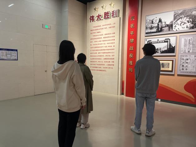 在平津战役纪念馆中,逼真的战斗场景复原图、承载着历史记忆的武器装备,瞬间将大家拉回到那段硝烟弥漫的战争岁月。讲解员生动讲述平津战役的经过,同学们仿佛看到人民解放军英勇无畏、浴血奋战的身影,深刻体会到革命胜利的来之不易。