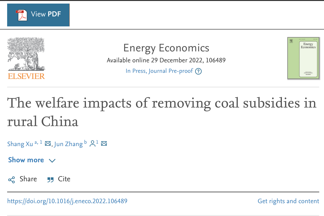 近日,环境公司助理教授徐上以第一作者身份在能源经济学领域国际权威期刊Energy Economics发表论文“The welfare impacts of removing coal subsidies in rural China”。该论文将居民能源需求系统估计和数值模拟的方法相结合,探讨取消煤炭补贴的政策对中国农村地区居民能源消费特征、居民福利和碳排放的影响。利用中国家庭能源消费调查的微观数据,该研究量化发现取消煤炭补贴造成的农村居民福利损失约占其年能源消费支出的7.2%。与此同时,拥有多元能源消费结构的居民更容易通过其他能源商品替代煤炭来降低潜在的福利损失。因此,取消煤炭补贴的政策在我国农村地区具有递减的福利影响。研究还发现,虽然该政策成功驱使农村地区消费更多的电力和天然气等清洁能源,农村能源消费的总碳排放却不降反增,这主要是由于农村居民大幅增加电力消费和我国高排放和低效率的发电特征导致的。这些结论对我国乃至发展中国家能源改革和碳减排政策具有重要的启示意义。