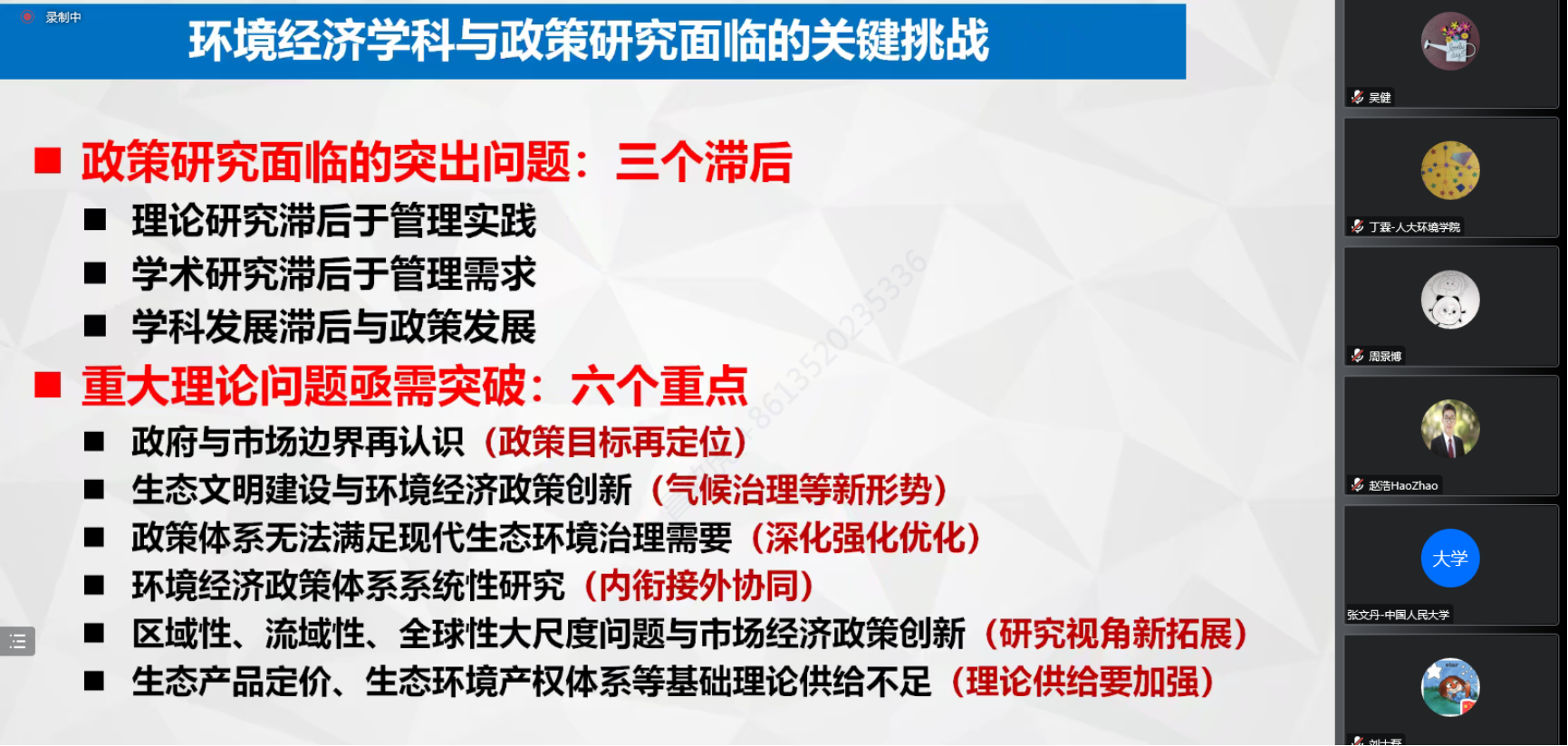 最后,yl1111永利集团环境公司吴健教授进行了点评。吴健教授指出,董战峰研究员从学术研究与政策制定两方面视角出发,全面系统地梳理了我国环境经济政策体系在“十三五”时期的进展和“十四五”时期面临的挑战与改革创新方向,内容丰富、分析透彻,对广大政策研究人员具有深刻的启发意义。同时,吴健教授还指出,董战峰研究员针对环境经济学科与政策研究面临的关键挑战剖析深入,点明了当前理论研究滞后于管理实践、学术研究滞后于管理需求以及学科发展滞后与政策发展的困境,勉励同学们尝试在理论层面进行创新,为政策设计和实施提供更优的理论基础与指导意见。