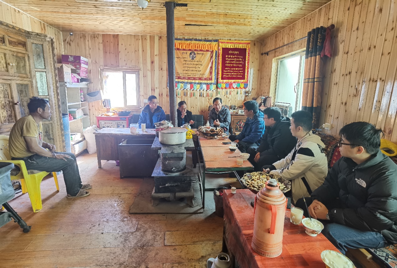 在去往查旦湿地的途中,调研团拜访了住在青藏高原山脚下的游牧藏民家庭,就国家公园园区内“一户一岗”制度、生态补偿机制的落实情况进行了访谈,聆听了其从普通牧民转变为澜沧江源园区一名生态管护员,从建档立卡贫困户到公益网格员,从被动接受管理向社会管理参与者转变的人生故事。通过访谈,调研团了解到像这样的牧民管护员在三江源国家公园有17200余人,园区通过落实生态效益补偿、国有天然林管护、生态工程务工、生态管护岗位就业、产业扶持、定点帮扶等政策,积极吸纳群众参与生态工程。农牧民们享受到了生态“红利”,保护生态的积极性空前高涨。