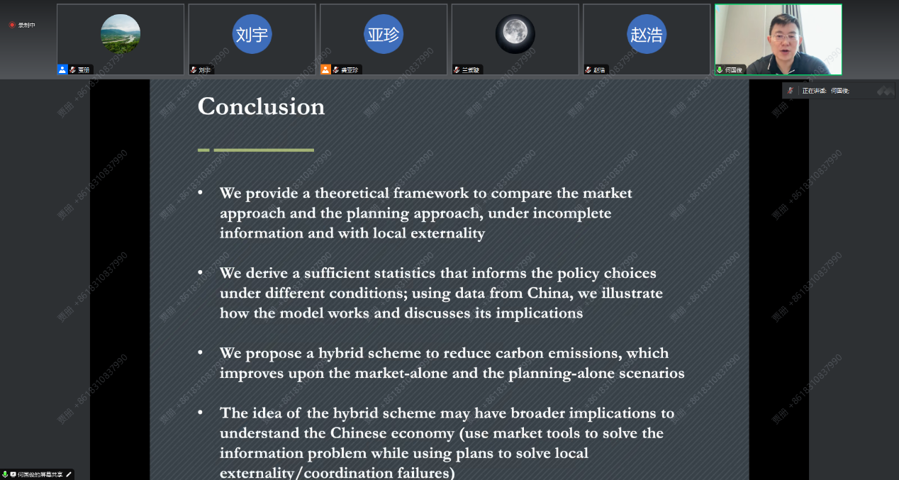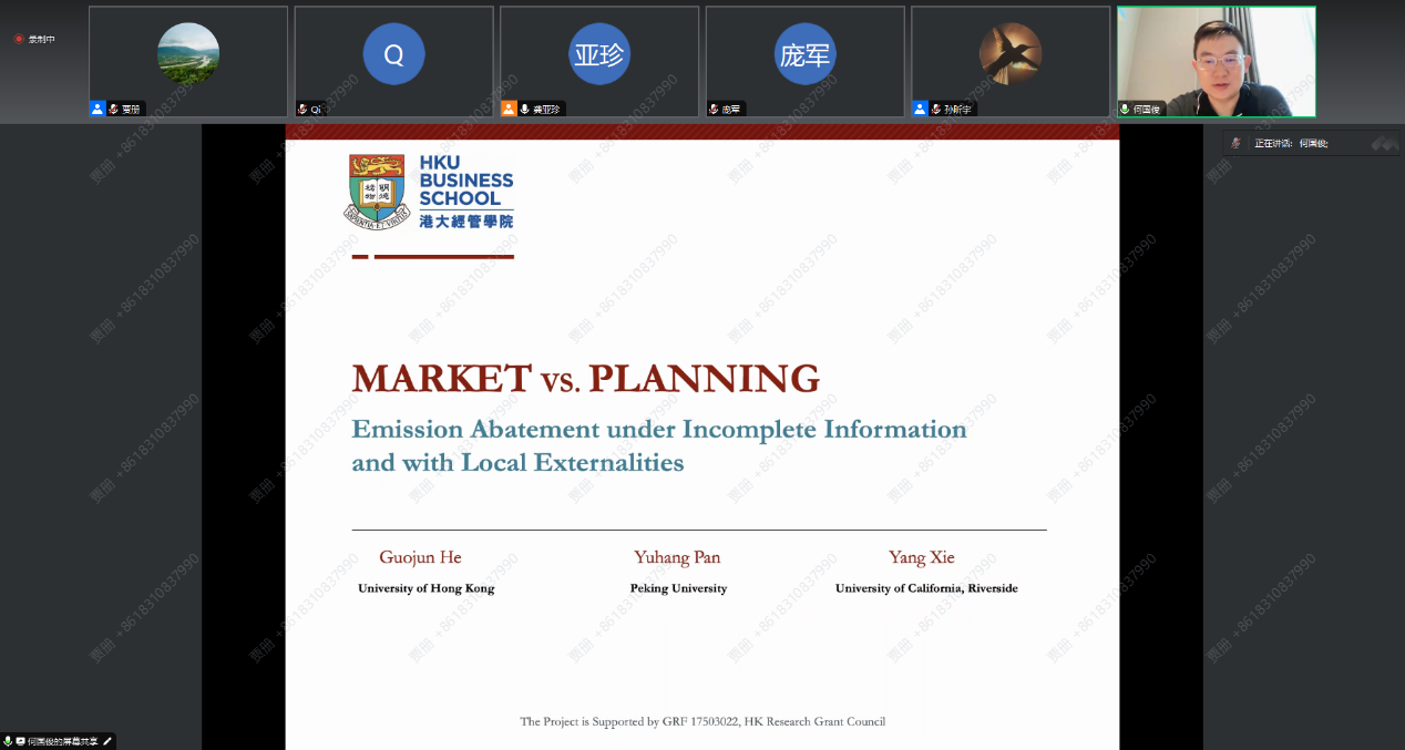 2023年8月26日,yl1111永利集团环境公司主办的“明德环境学术讲坛”第二十五讲以线上方式成功举办。本次讲坛邀请香港大学经管公司ESG研究所所长、香港大学中国经济研究所副所长何国俊副教授作了题为“Market vs. Planning: Abating Carbon Emissions under Incomplete Information and with Local Externalities”的学术报告。yl1111永利集团环境公司经理庞军教授首先致辞,代表公司对何国俊教授为公司师生作学术报告表示诚挚感谢,并对参会师生在交流学习过程中能够有所收获提出了殷切期望。会议由yl1111永利集团环境公司龚亚珍教授主持。