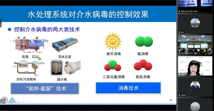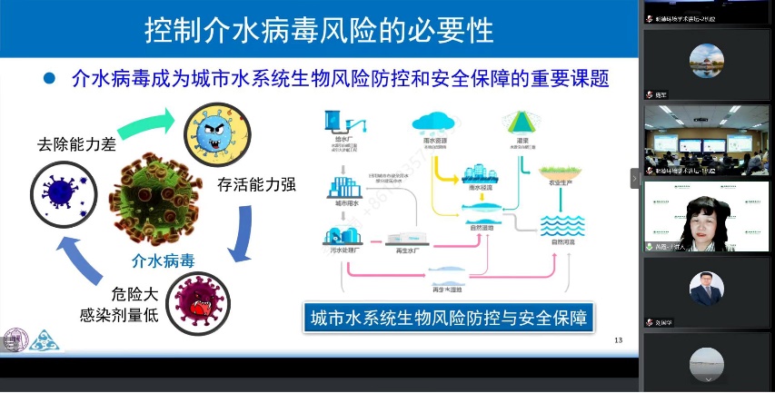 黄霞教授首先阐述了在新冠疫情背景下控制介水病毒风险的必要性,通过介水病原微生物种类与危害、介水病毒风险识别和控制、介水病毒检测与预警等内容,详细地梳理了介水病毒在城市水环境中的危害及对应的预防控制手段。最后,对介水病毒相关的未来研究进行了展望。