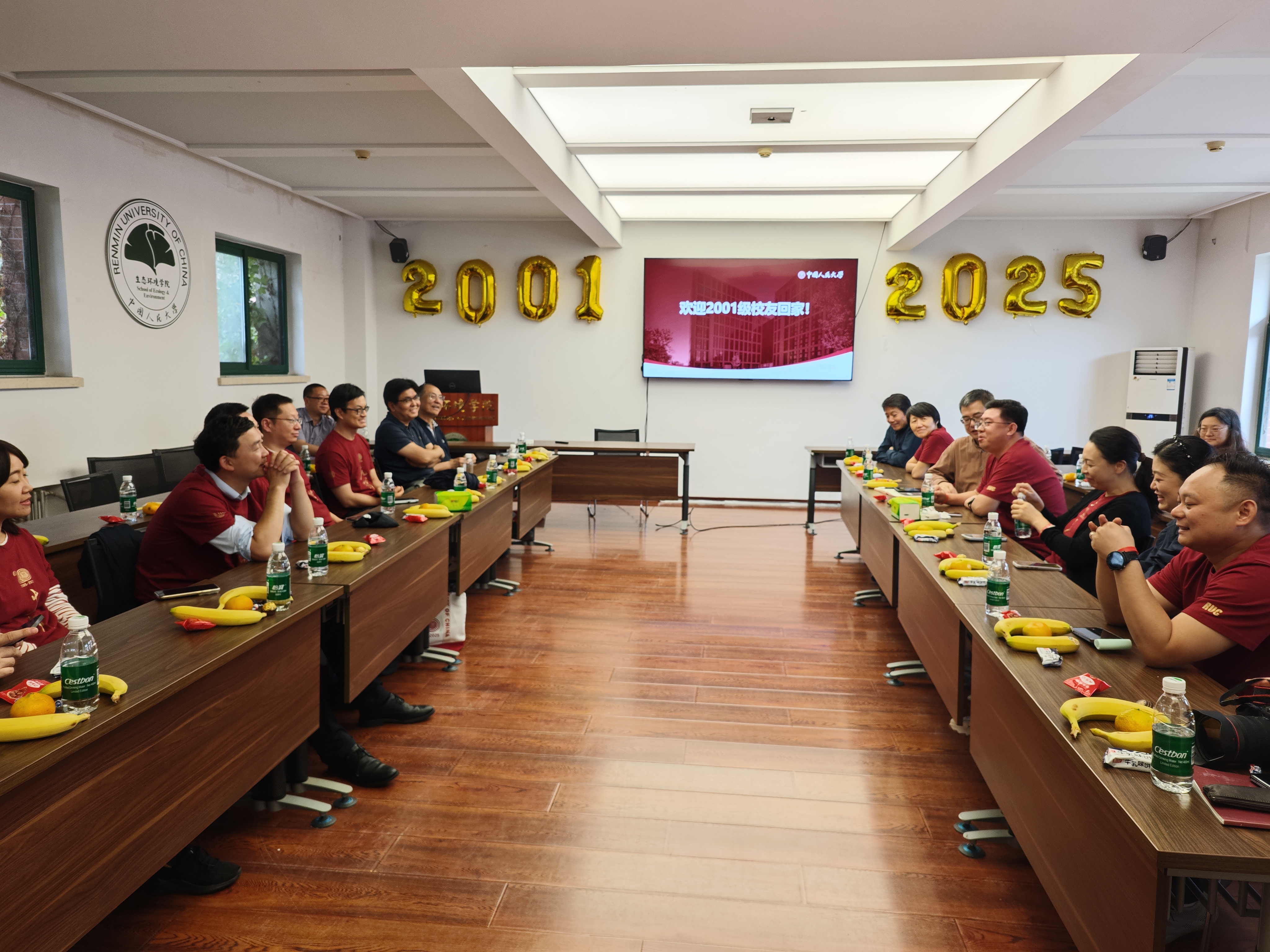在随后的班主任寄语环节,2001级公共事业管理班班主任韩威、环境科学班班主任张景来老师相继发言。韩威老师以珍藏的往事为例,风趣而感慨地回顾了当年与员工们教学相长的岁月,她为班级同学在各自工作领域展现出的专业能力和取得的成绩深感自豪。张景来老师则从严谨治学谈到人生选择,他为员工们扎根中国式现代化事业实践一线所取得的成就倍感欣慰。老师们深情寄语,希望全体员工坚持“实事求是”的校训精神,在各自的赛道上继续发光发热,并祝愿大家身体健康,事业顺遂,前程似锦。