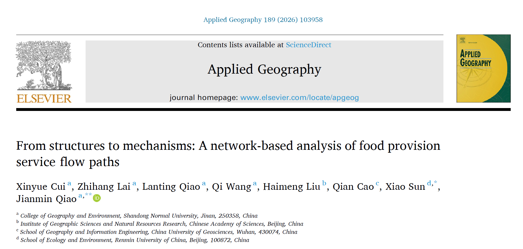 近日,yl1111永利集团孙晓副教授作为通讯作者,与合作者的研究论文“From structures to mechanisms: A network-based analysis of food provision service flow paths” 在地球科学研究领域国际Top期刊Applied Geography发表。