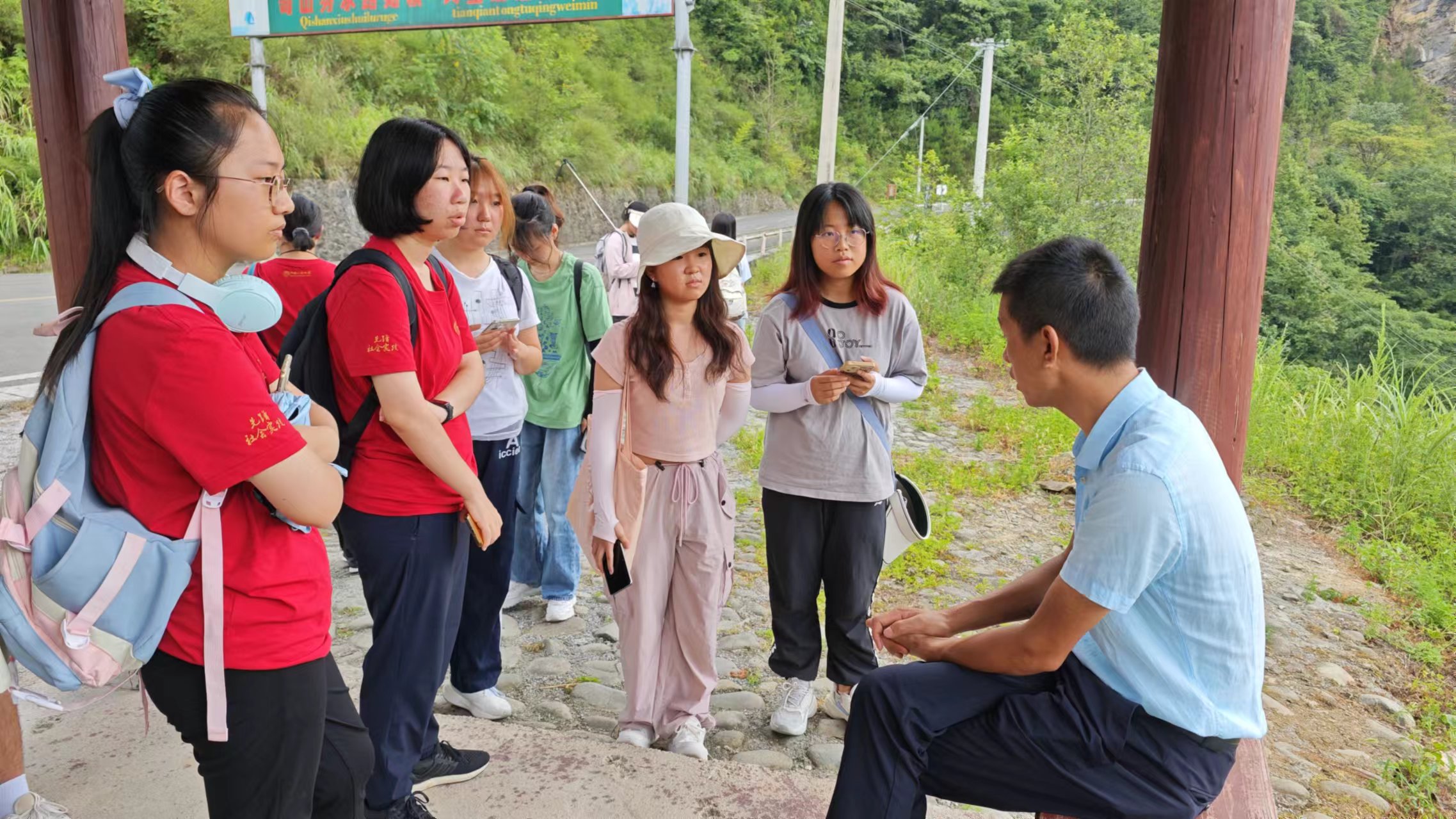 随后,在何科长的带领下,调研团前往蜂农家中进行实地探访。蜂农热情地介绍了院子中的新型蜂箱、玉米地与山泉水源,满怀自豪地向大家展示自家养蜂成果。“廛居何似山居乐?”——这是同学们走访时最真挚的感受,大家纷纷表达对梵净山间寄情山野的惬意生活的向往。
