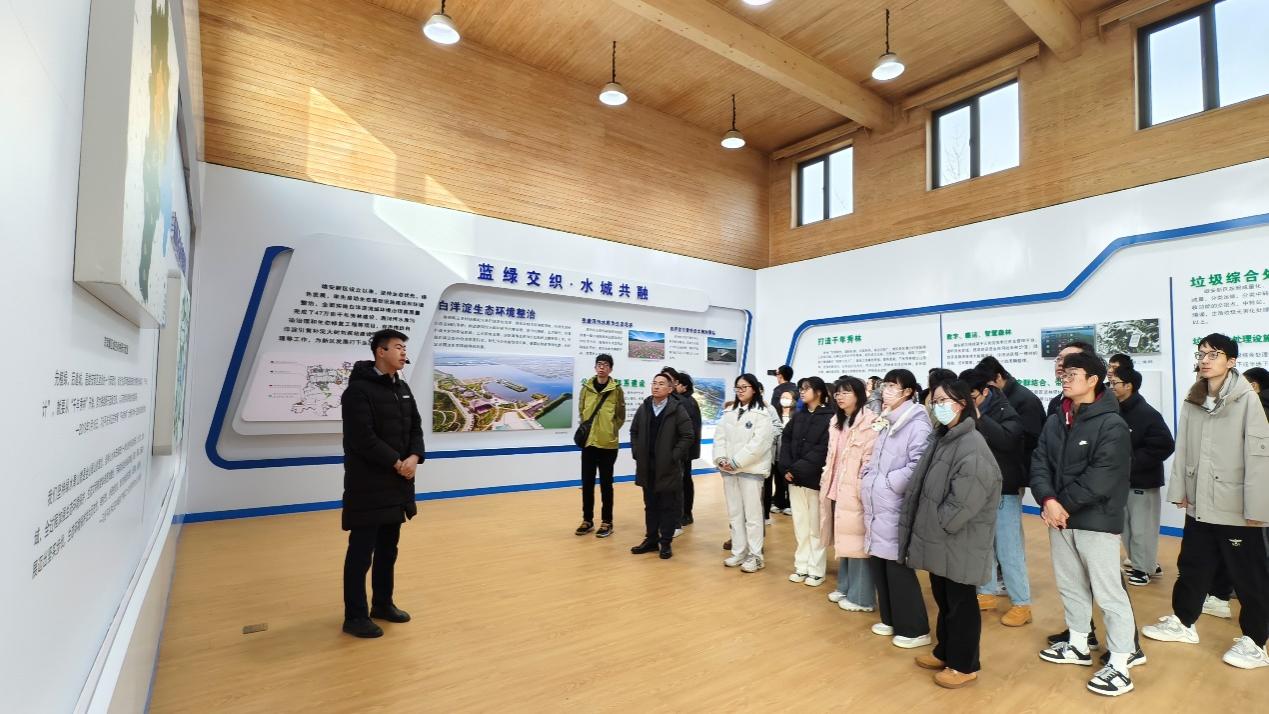 白洋淀位于保定境内的安新县,是国家重点旅游区和开放区。水域面积366平方公里,为华北平原最大的湿地生态系统,也是我国候鸟迁徙通道上重要的停歇地、繁殖地和越冬地,是湿地水鸟集中分布区。多年前,白洋淀由于缺少上下游协同防护,水质不断恶化,气味刺鼻难闻,成为纳污之地。近年来,白洋淀生态环境得到较大恢复和提升,淀区水质达到Ⅲ类标准,在白洋淀迁徙、越冬的鸟类数量也有明显提升。而白洋淀的生态之变,也是党的十八大以来我国生态文明建设成效的一个生动缩影。在工作人员的引领下,同学们乘坐环保船欣赏了白洋淀“华北明珠”的淀泊风光与“鸟类天堂”的生态美景。同学们表示,冬季的白洋淀虽然没有了夏日的苇绿荷红,但充满了静谧惬意之美,坐着小船可以充分感受白洋淀清澈的湖水、宽广的湖面,别有韵味。也进一步认识到了生态文明建设的成果是普通老百姓可以切身体会到的,而绿水青山就是金山银山的理念已经成为全党全社会的共识和行动。